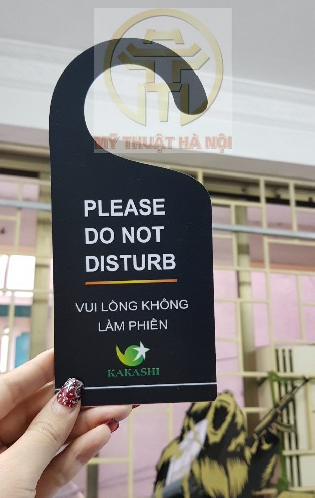 Biển treo cửa phòng khách sạn resort thường in với những nội dung như sau: “Đề nghị không làm phiền”, “Xin đừng làm phiền”, “Đề nghị dọn phòng”, “Đang dọn phòng”, “ Đang họp” hoặc mang nội dung, thông tin riêng mà quý khách muốn truyền tải tới cho khách hàng.